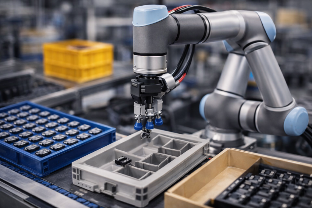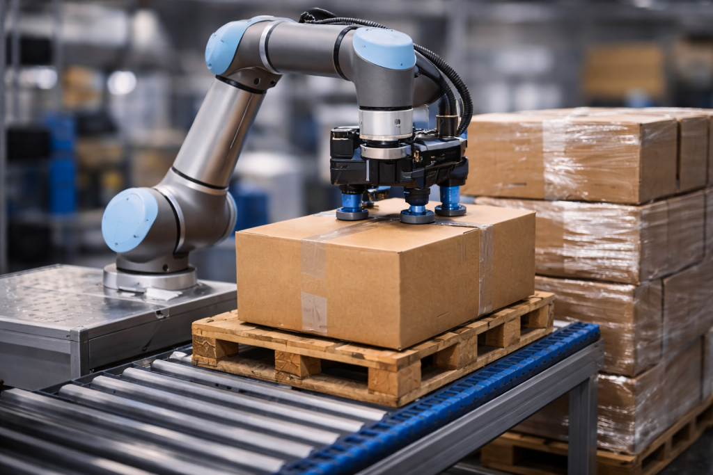 Cobots handle packing, sorting, and stacking tasks efficiently, especially in low-to-medium volume environments where flexibility matters.