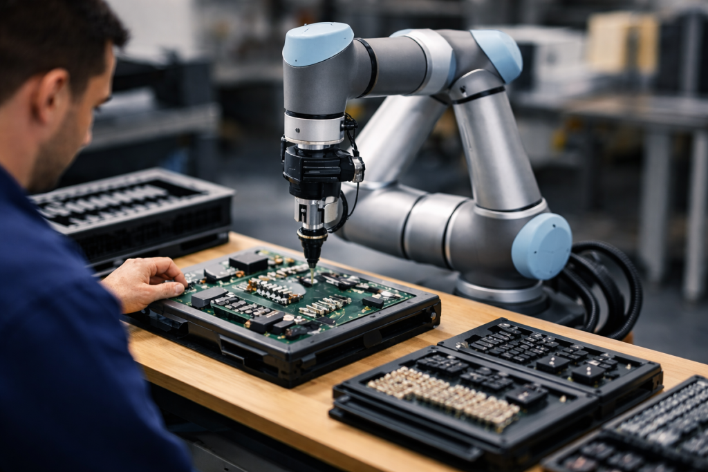 Cobots assist with fastening, part placement, and simple sub-assemblies — improving repeatability while allowing operators to focus on quality-critical steps.